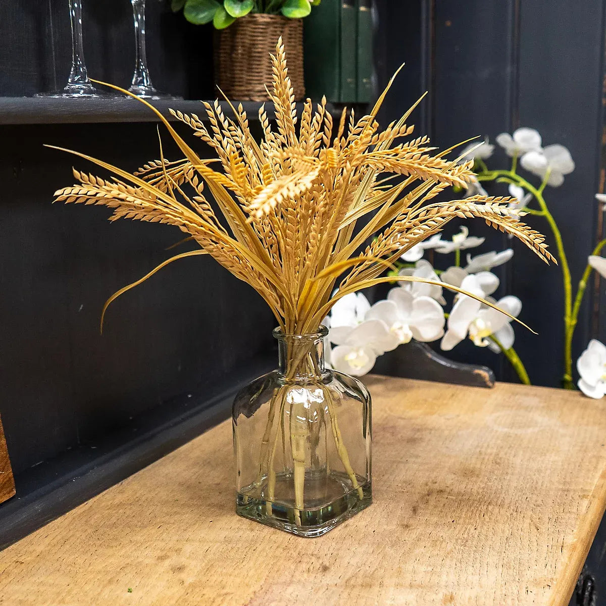38cm Dried Grass Artificial plant in Clear Glass Bottle vase