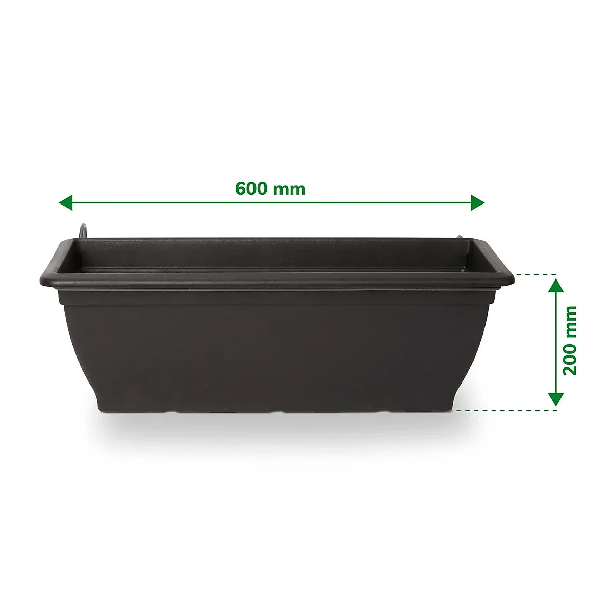 Verve Florus 15L Black Plastic Bell Rectangular Trough (H)20cm (W)24.5cm (D)60cm